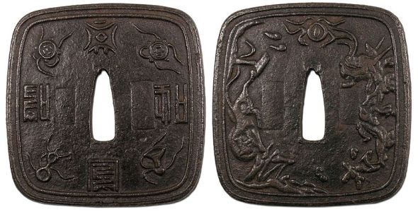 Dalším charakteristickým znakem ninja-tó je velká tsuba čtvercového tvaru. Tsuby jsou v japonské terminologii rozděleny podle tvaru a typu. Čtvercová tsuba je označována jako kakugata. Existuje však celá řada cub, které se svým tvarem blíží tvaru čtverce. Podstatné však je, že tento tvar záštity byl běžně používán na soupravách nošených samuraji. Výrazně větší rozměry tsub přesahující průměr 9 cm také nejsou ničím výjimečným. Použití záštity jako stupátka při přelézání zdí nebylo výsadou ninjů. Tuto techniku s oblibou používali i róninové kabukimono (samurajové bez pána) při vloupáních do domů bohatých měšťanů. Tohle páchání nepravostí bylo natolik rozšířené, že dokonce vedlo v r. 1645 k vydání zákazu nošení hranatých tsub na mečích Edským magistrátem.