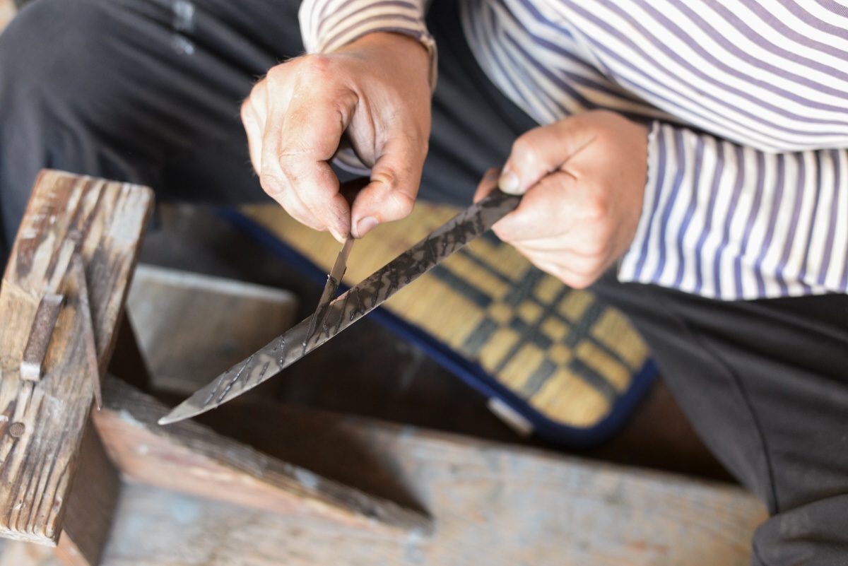 Nože z překládané oceli a tradiční oceli Oroshigane
