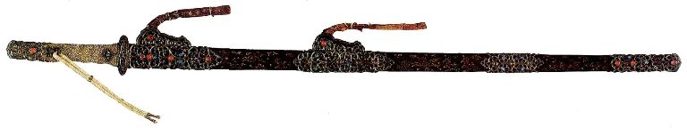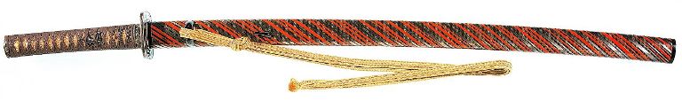 Strohost výbavy meče také nebyla výsadou ninjů, stejně jako jeho černá barva. Zdobení součástek mečů nabylo největšího rozmachu až v mírových dobách Edo. Meče bohatých samurajů a kupců se tak stávaly přehlídkou jejich bohatství a řemeslné zručnosti svých tvůrců. Nicméně v dobách válek existovaly velmi strohé soupravy samurajských mečů, postrádající jakékoli zdobení. Černý lak byl nejčastěji používanou barvou na soupravách mečů. U bojových souprav jím pak býval silně prolakovaný i oplet rukojeti. Bílá barva same (rejnočí kůže kterou je potažená rukojeť pod opletem) byla u souprav uchigatana před obdobím Edo spíš vzácností. I same bývalo pokryto silnou vrstvou laku urushi. Vše bylo podřízeno účelovosti a odolnosti proti povětrnostním vlivům. Meč v poli válečném byl vystavován působení sněhu, deště, bláta i slunce, ale také mechanickému namáhání. O nějakou tu oděrku jistě nebyla nouze. Bohaté zdobení by u meče vystavovaného takovému zatížení značně utrpělo, a jeho používání tak ani nebylo na místě.
