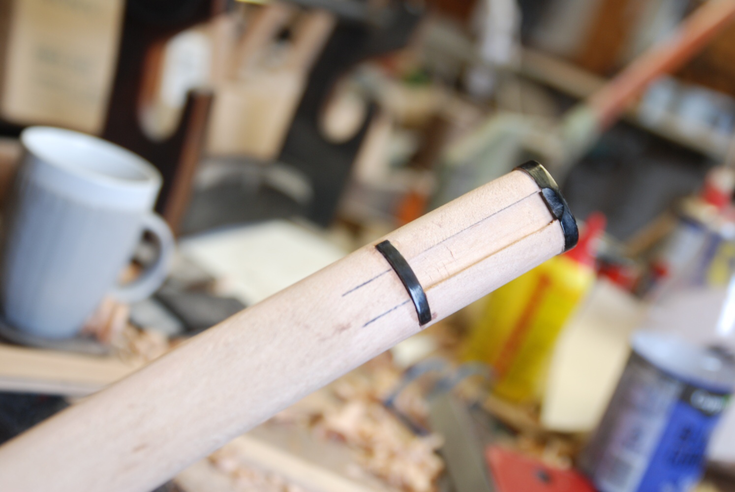 I made the seppa washers from copper sheet and adjusted their shape to the circumference of the koiguchi and fuchi. Since the habaki is brass, it would have been preferable for the seppa to be made of brass sheet as well.