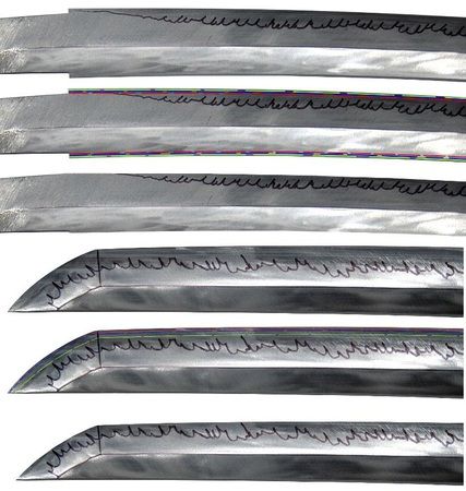 Shortening the blade was always done from the tang (nakago), never from the tip. In the case of shortening from the tip, the newly sharpened tip would be without a hamon line, and in the end actually destroyed the blade.