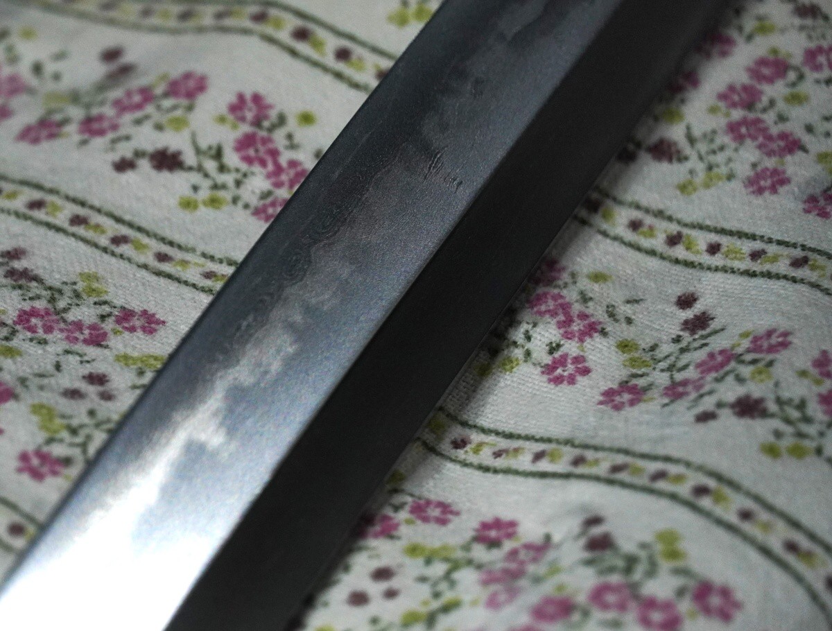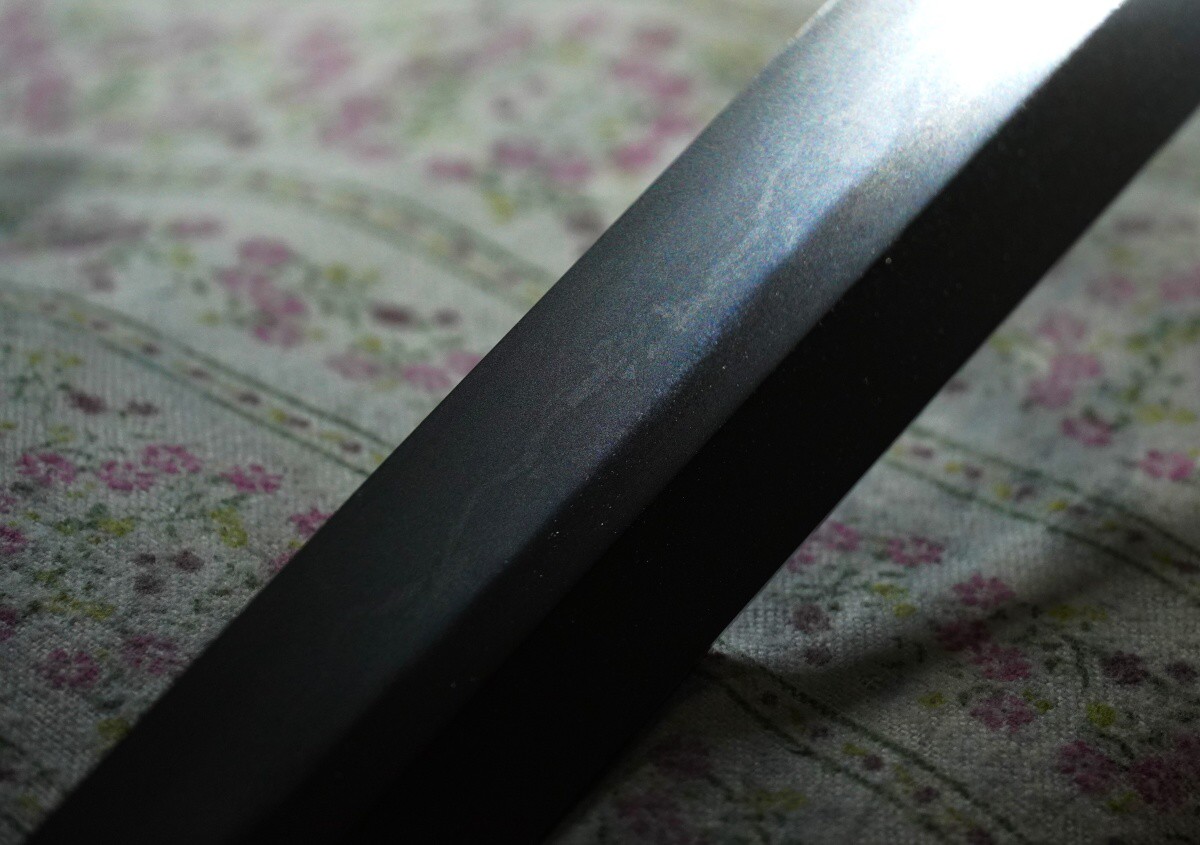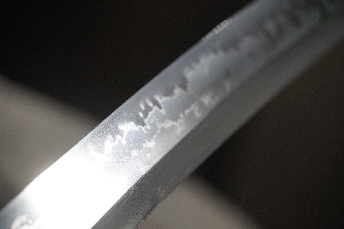 The blade is polished in a modern hadori style that moderates the wild metallurgical textures somewhat.