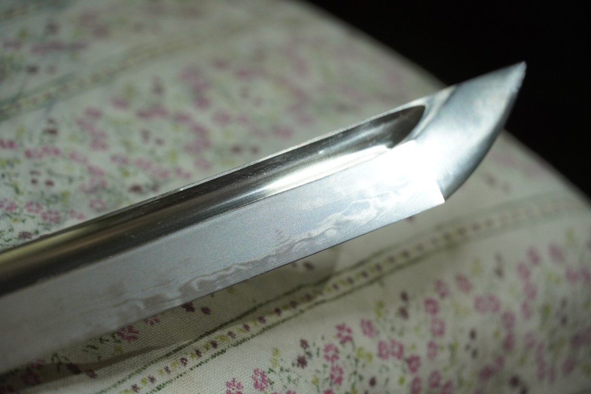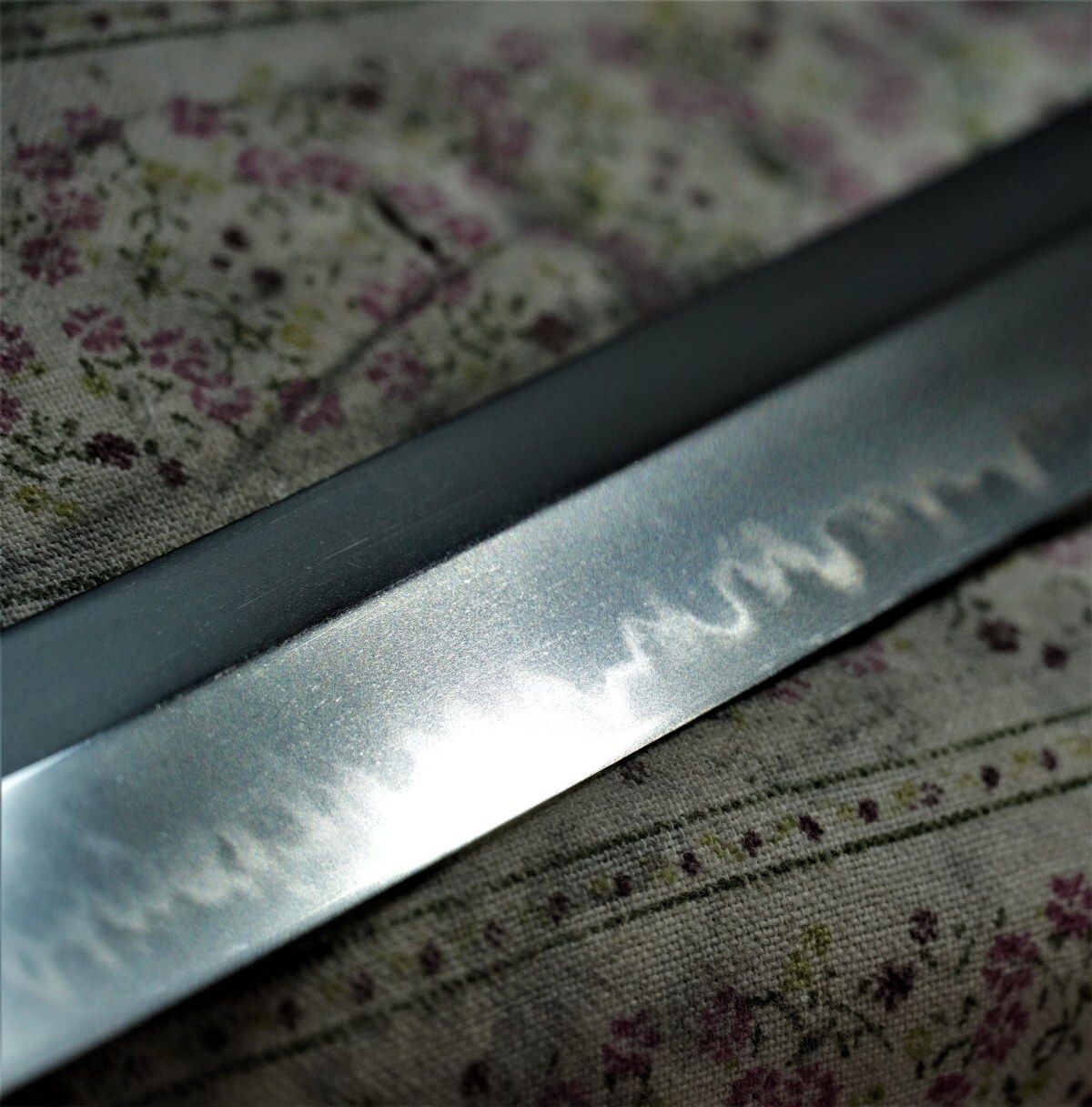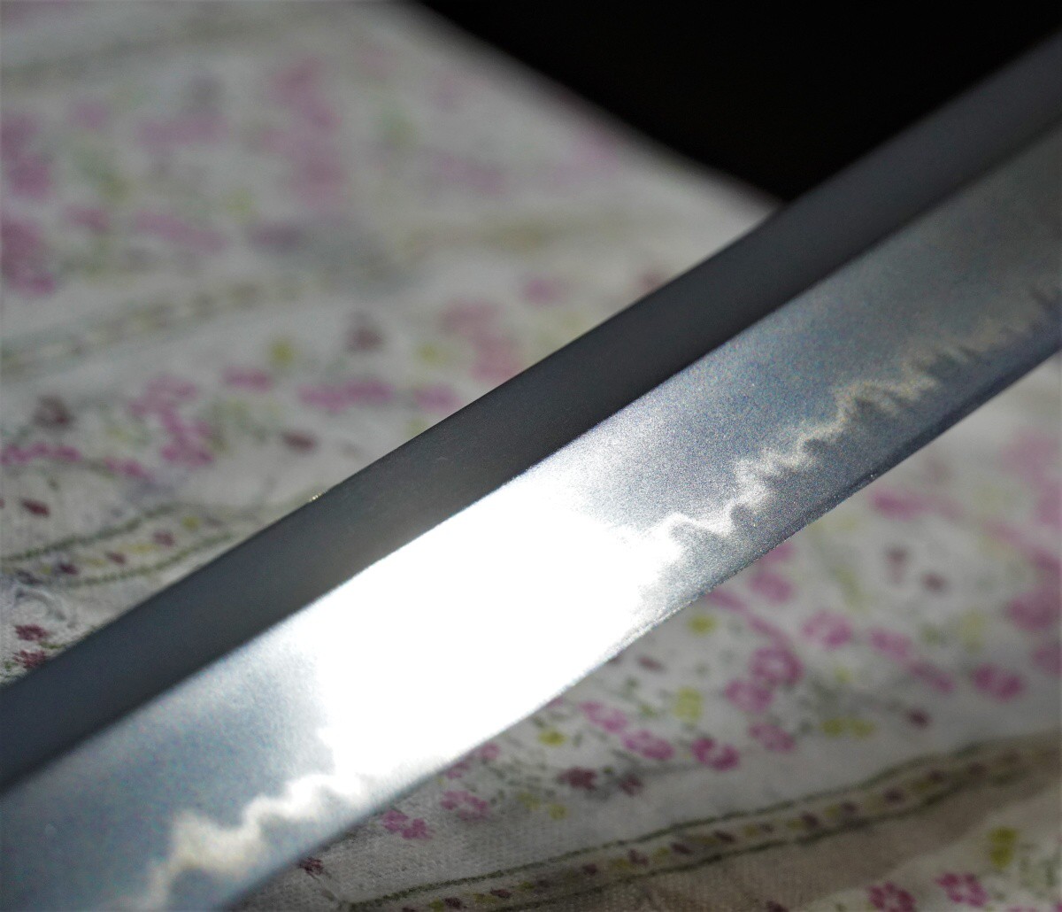 Hamon san bon tsugi. Proportionally it is an atypical, designed for a specific school of Iai jutsu (MJERJ).