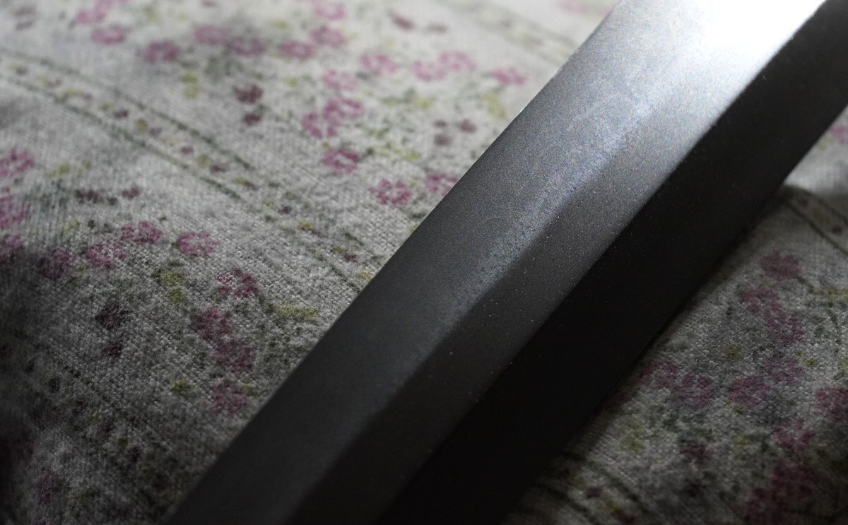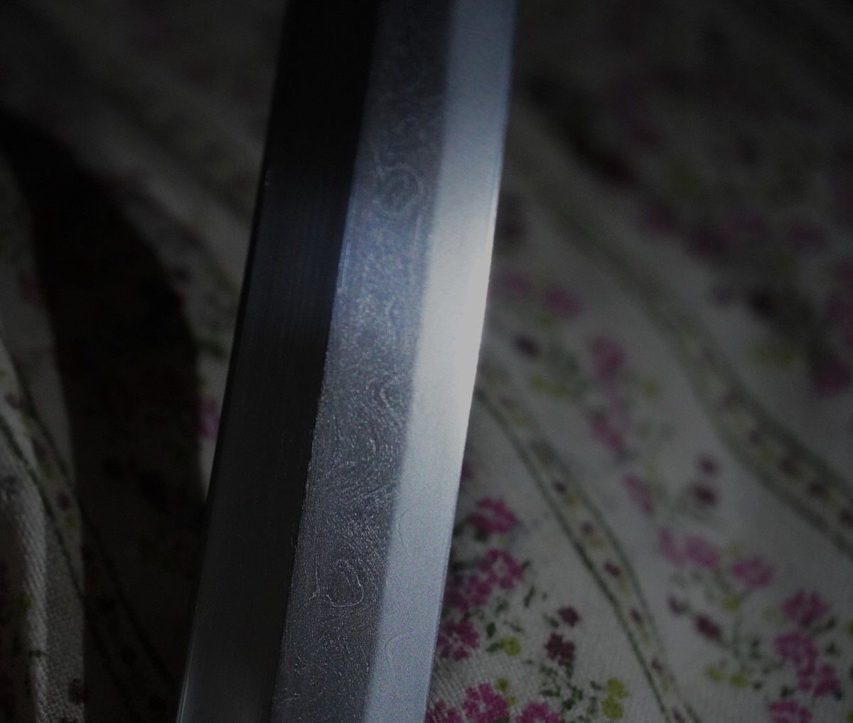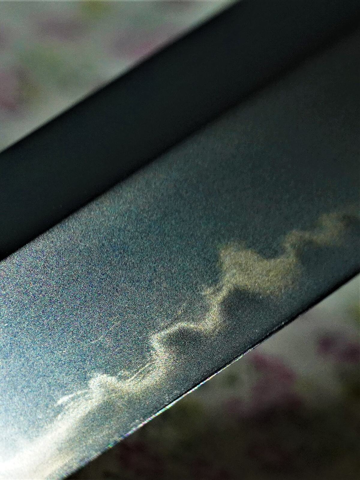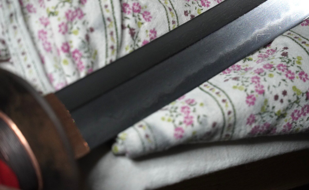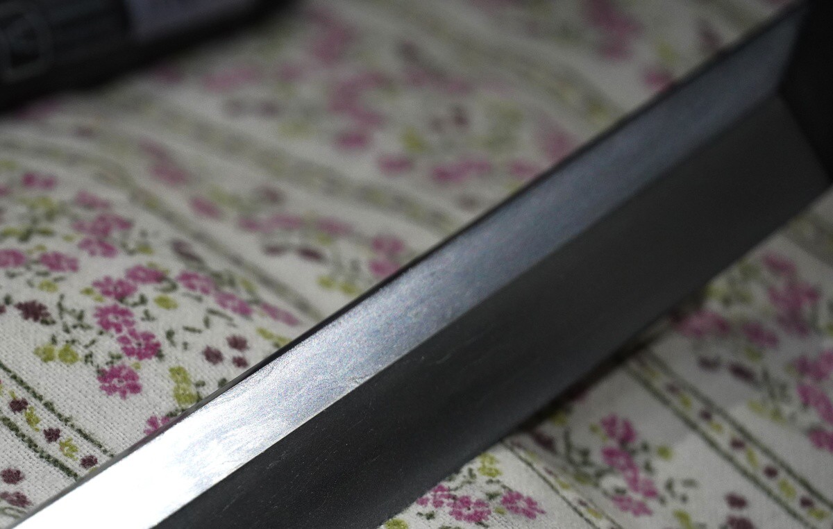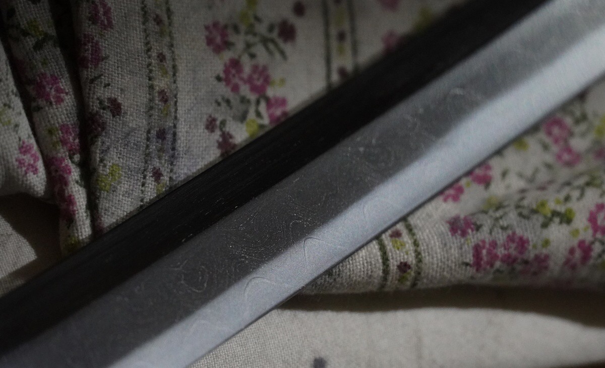 The sword is designed for tameshigiri. Hamon is intentionally harder. It allows for excellent sharpening and is excellent for chopping tatami or green bamboo. The higher hardness is achieved by leaving more carbon in the steel. Approximately 0.7% (I usually adjust to 0.6%C).