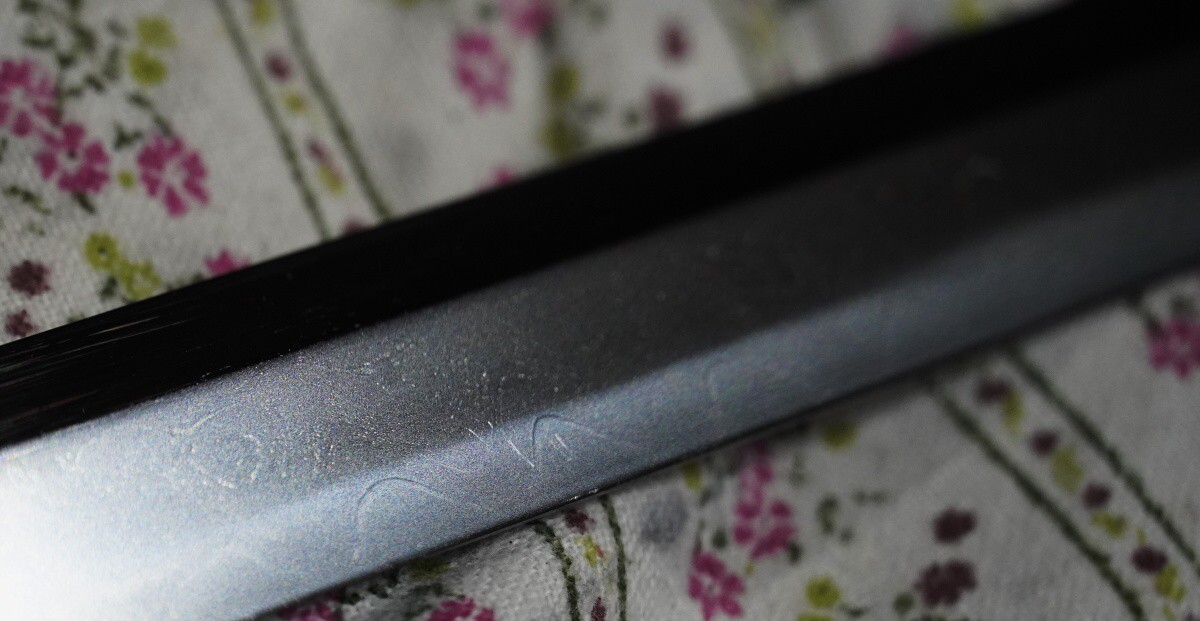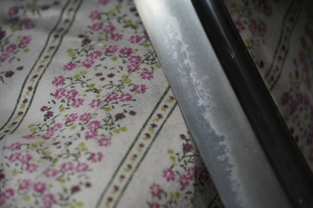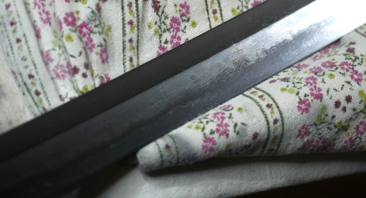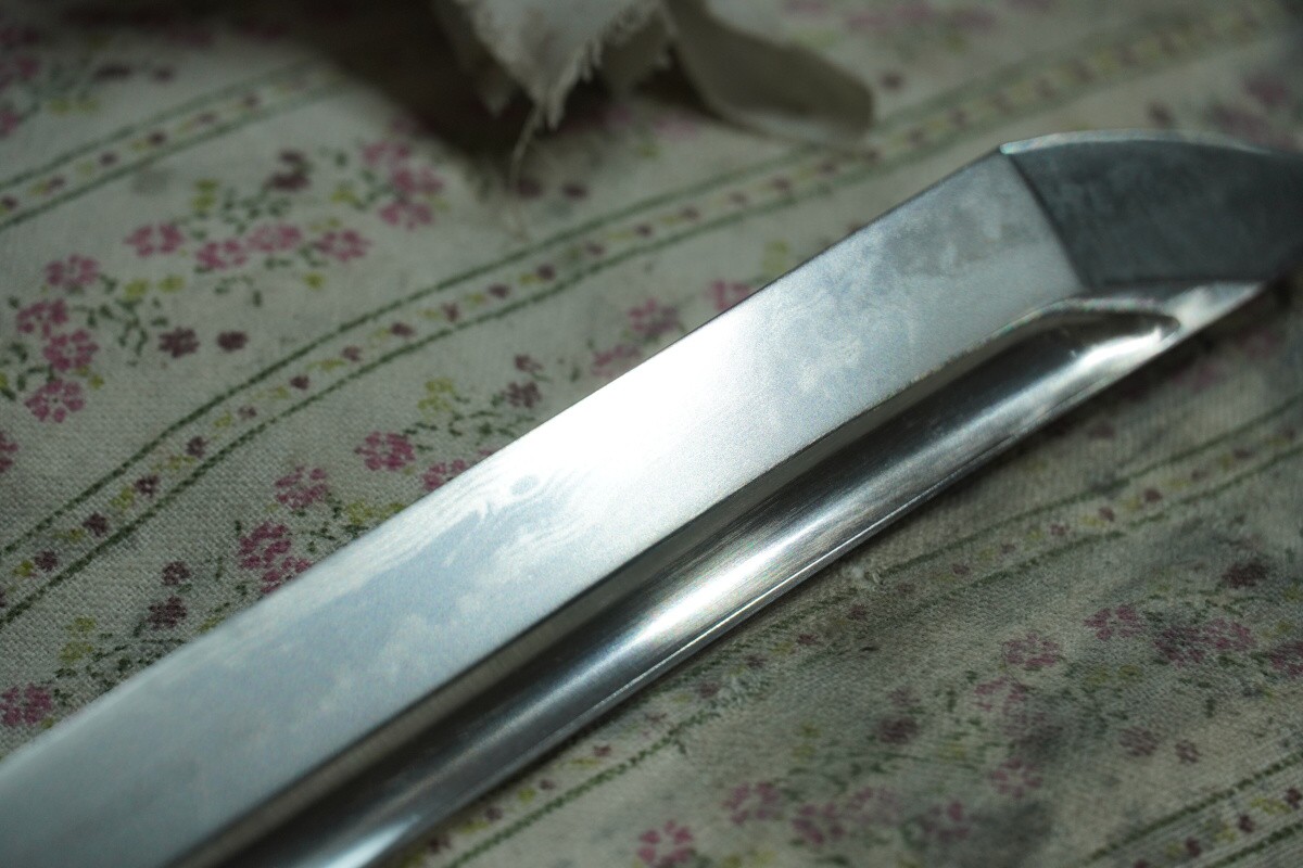 Katana, Nambokucho style, Bizen. Nagasa approx.75cm, mix of tamahagane/oroshigane own production. Jigane mokume, itame, with chikei. Hamon ko-choji. Keisho style polishing.