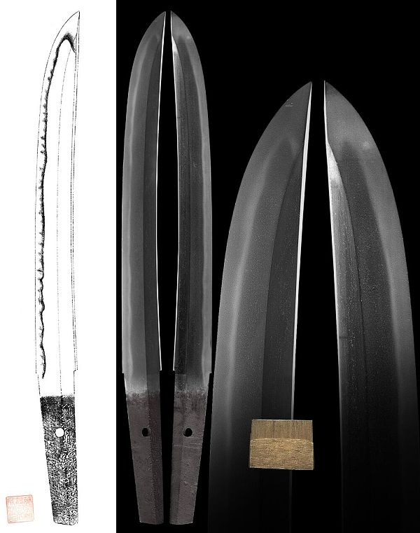 The shape of the tanto has varied quite considerably over historical periods. In the middle Kamakura period 1232-1287 it was made in the hira zukuri style. The length of the blades is around 25 cm. It is typical of blades from this period that the tip of the uchi sori (or takenoko sori) is lowered, but originally they were probably straight. Tantō production in the Kamakura period was considerable, yet not many well-preserved examples have survived. This is why Kamakura-period tantō are now well-preserved and highly valued in the sword market (see photo attachment). In the late Kamakura period 1288-1333, the size of the tantō increased and the characteristic nakago curve is found. The blades were narrow in mihaba. This type of blade is called mete zaschi. This type of tantó was used to stab into a gap in the opponent's armor The typical hamon is the suguha.