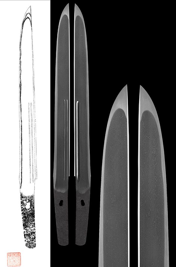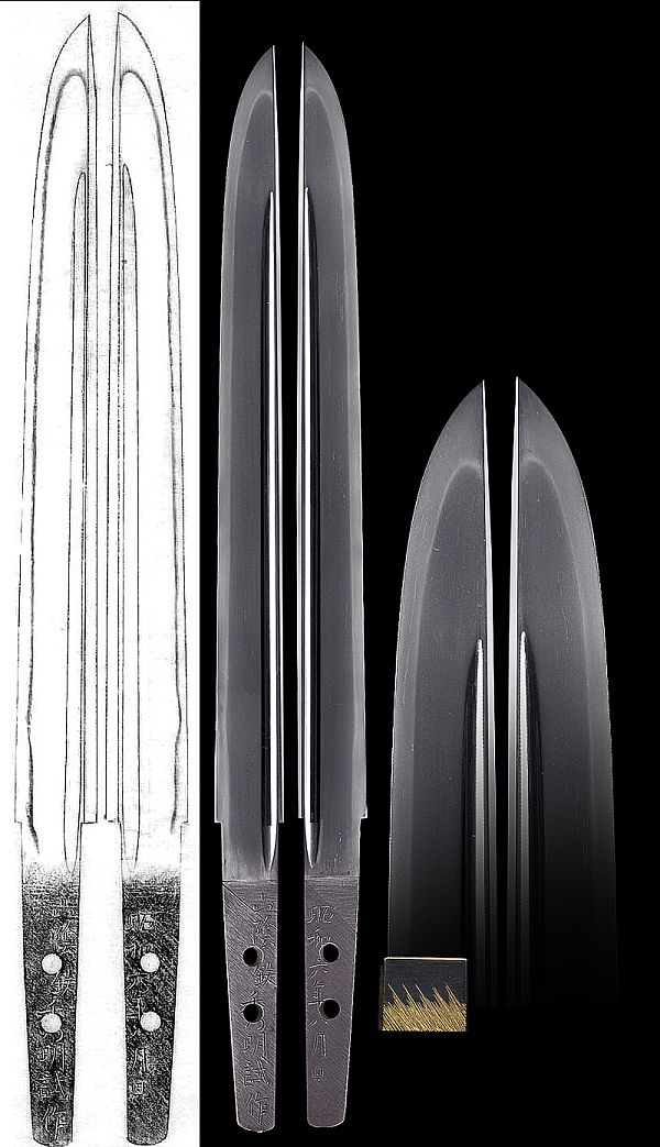 In the Muromachi period 1394-1596, new types of tantō began to be produced. This period was a time of continuous warfare. Swords were often mass produced. Inferior material was used for their production, which was reflected in the quality of the swords. However, even in this period, excellent swords of high quality were produced. Tanta of the moroha zukuri type with two blades and tanta of the yoroi doshi type with short, thin blades with a distinctive kasane began to be produced. Their cross-section was close to an equilateral triangle and they were used for stabbing through armour.