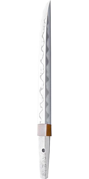 In the following period of 1334-1393, known as the Northern and Southern Dynasties, there was the aforementioned tantō of above-standard length, which reached a nagas of around 35 cm. These are wide blades of the hira zukuri type with a thin kasane (blade thickness). They have a regular sori with a curve in the centre of the blade. Hamon is usually notare, hitatsura, etc.